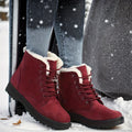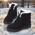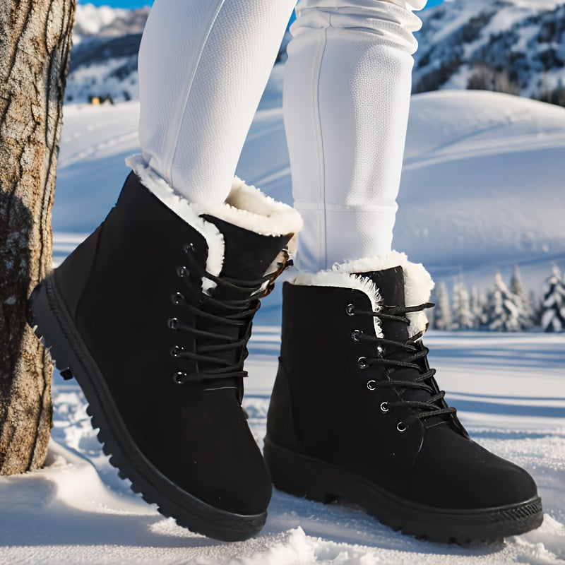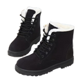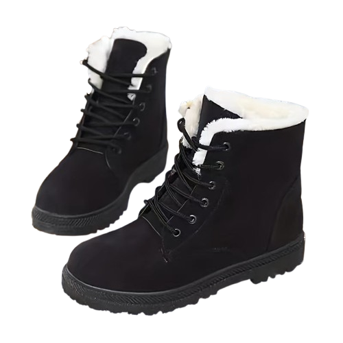 Deze zwarte winterboots zijn ontworpen om je voeten warm en comfortabel te houden tijdens koude dagen. De binnenkant is volledig gevoerd met zacht, wit imitatiebont dat zorgt voor extra warmte en draagcomfort. De laarzen hebben een stevige rubberen profielzool die goede grip biedt op sneeuw en gladde ondergronden.