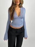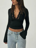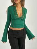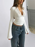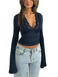Nora - Modieuze Crop Top met Diepe V-Hals en Flare Mouwen