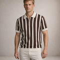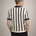 - Details: verticaal gestreept patroon, klassieke polokraag en contrasterende boorden voor een moderne uitstraling.