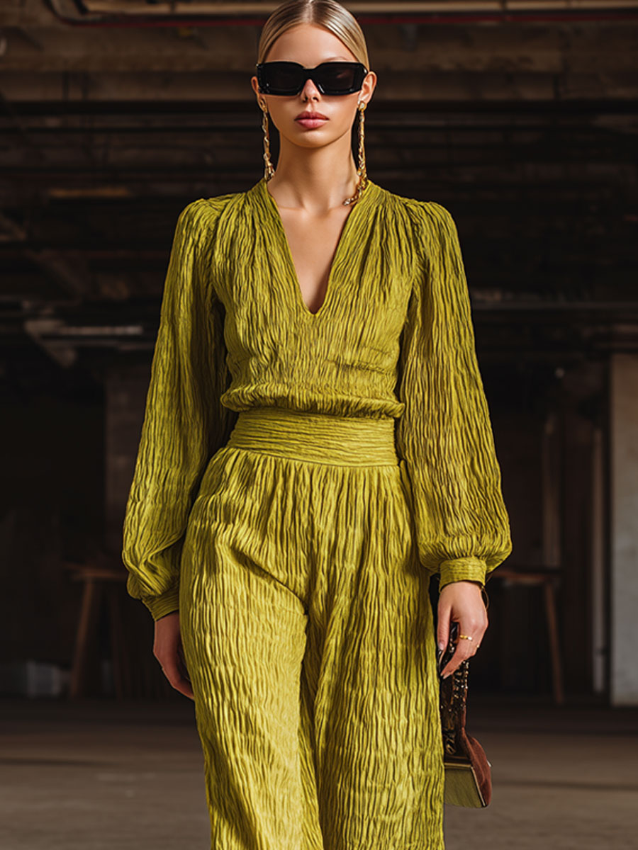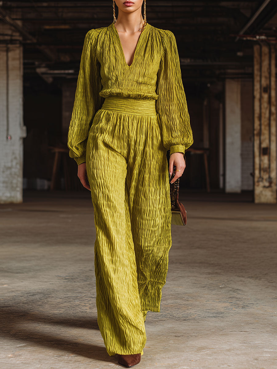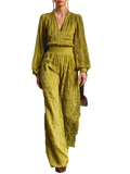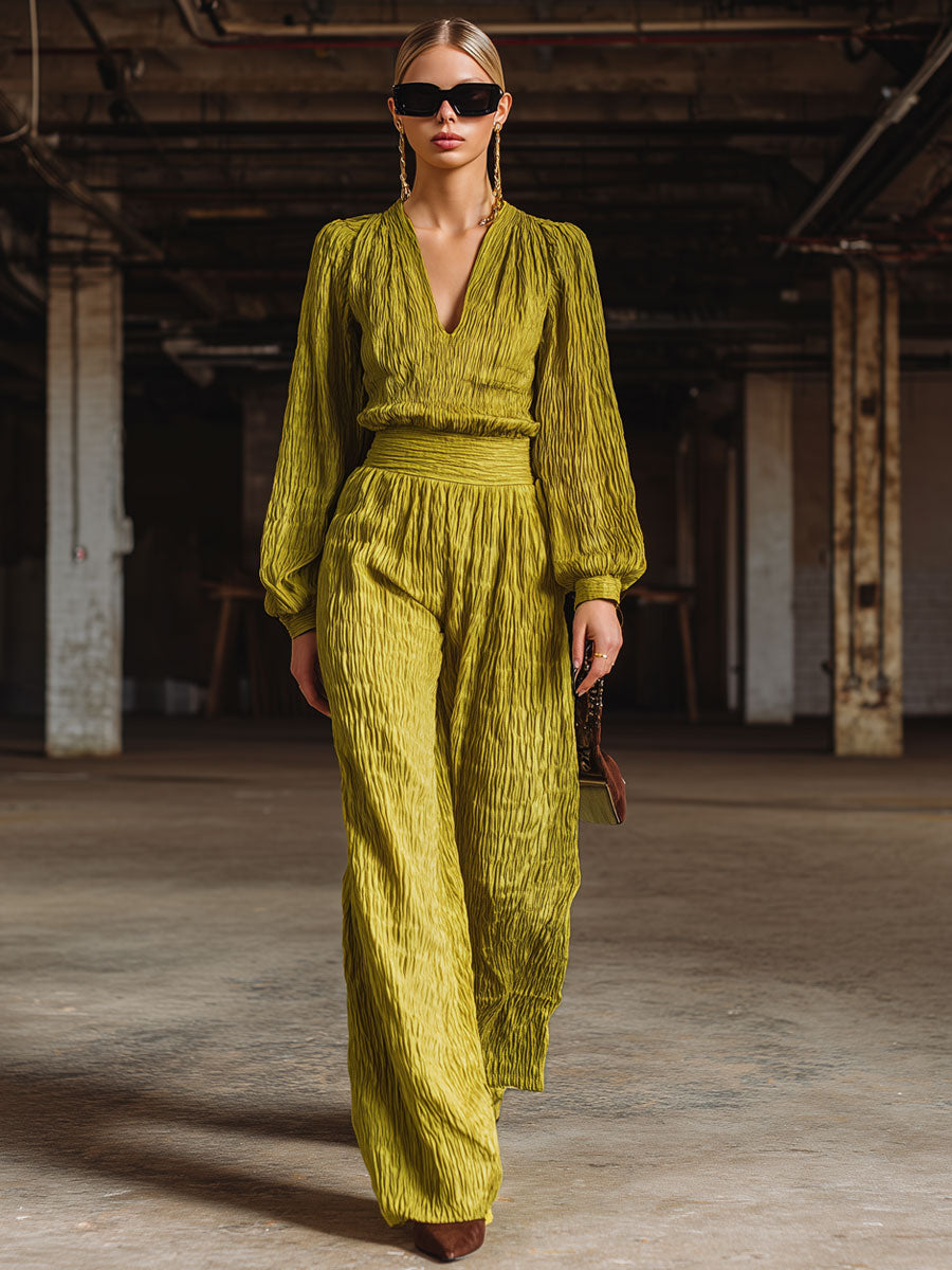 Aurelie – Retro Groene Wijde Jumpsuit met Lange Mouwen voor Vrouwen