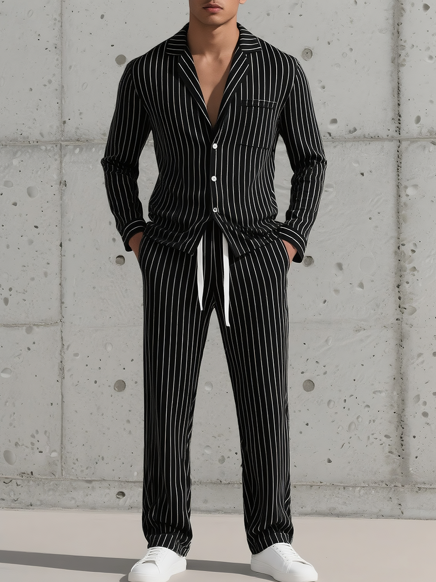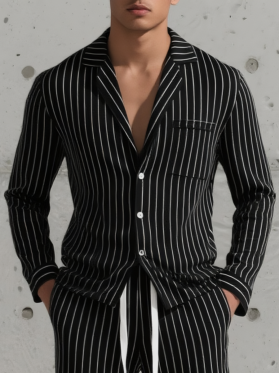 Rio – Retro Gestreepte Heren Co-ord Set met Lange Mouwen