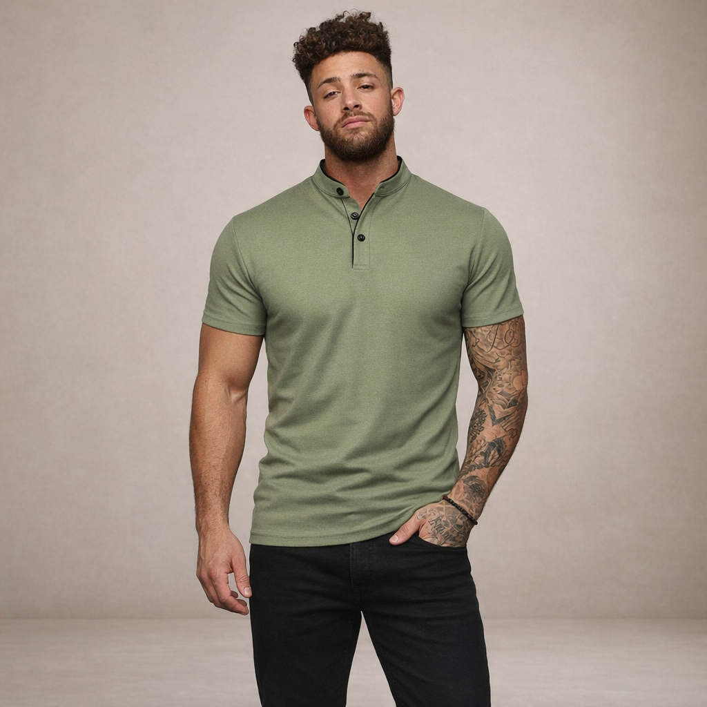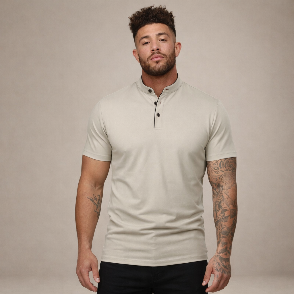 De Rivell polo is ontworpen als een verfijnd en veelzijdig shirt met een moderne, ingetogen uitstraling. Het model heeft een aansluitende pasvorm en is uitgevoerd met een opstaande kraag en een korte knoopsluiting aan de hals, wat zorgt voor een nette en eigentijdse look. De korte mouwen en rechte zoom dragen bij aan een strak silhouet, terwijl de gladde katoenen stof comfortabel aanvoelt en geschikt is voor dagelijks gebruik. Deze polo is eenvoudig te combineren met zowel casual als meer geklede outfits.