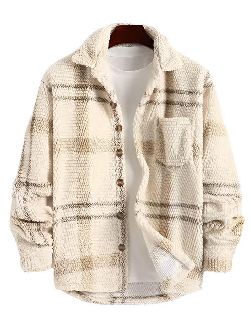 Roenaric - Stijlvolle Heren Flanellen Overhemdjas met Knoopsluiting