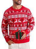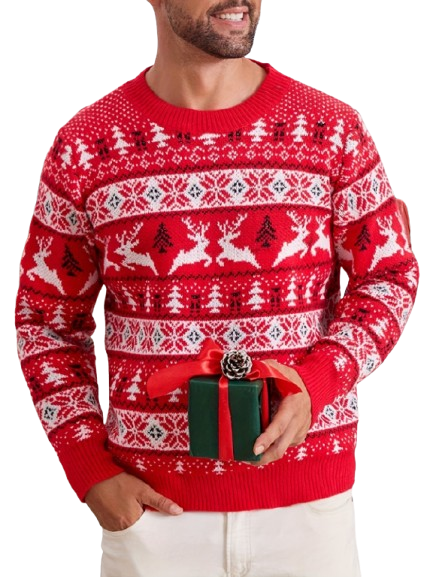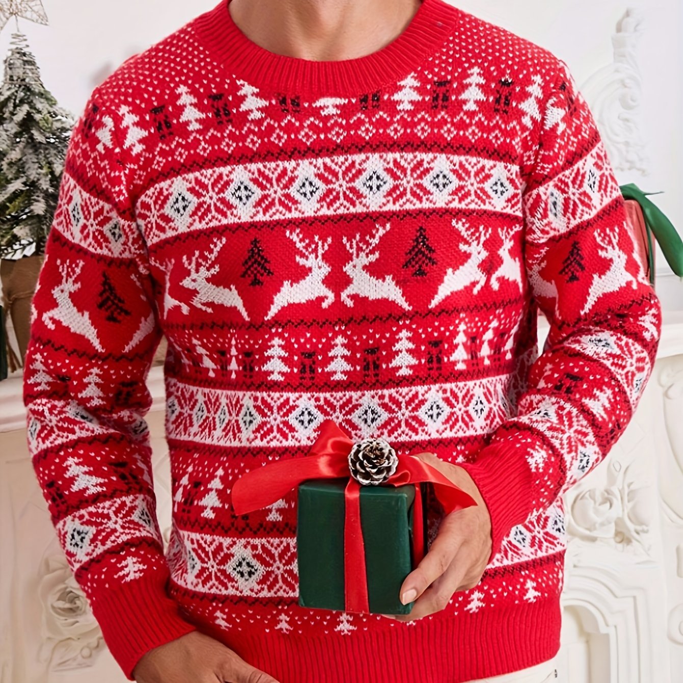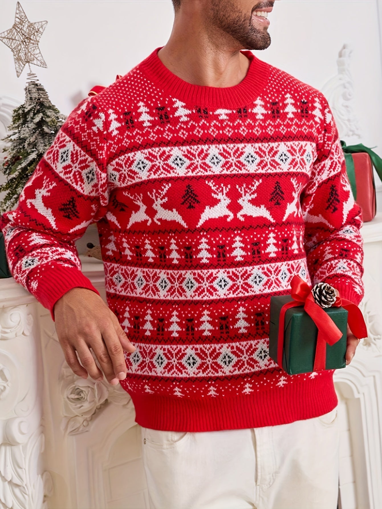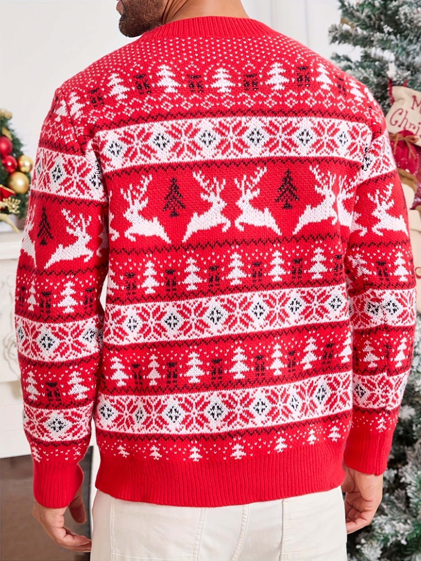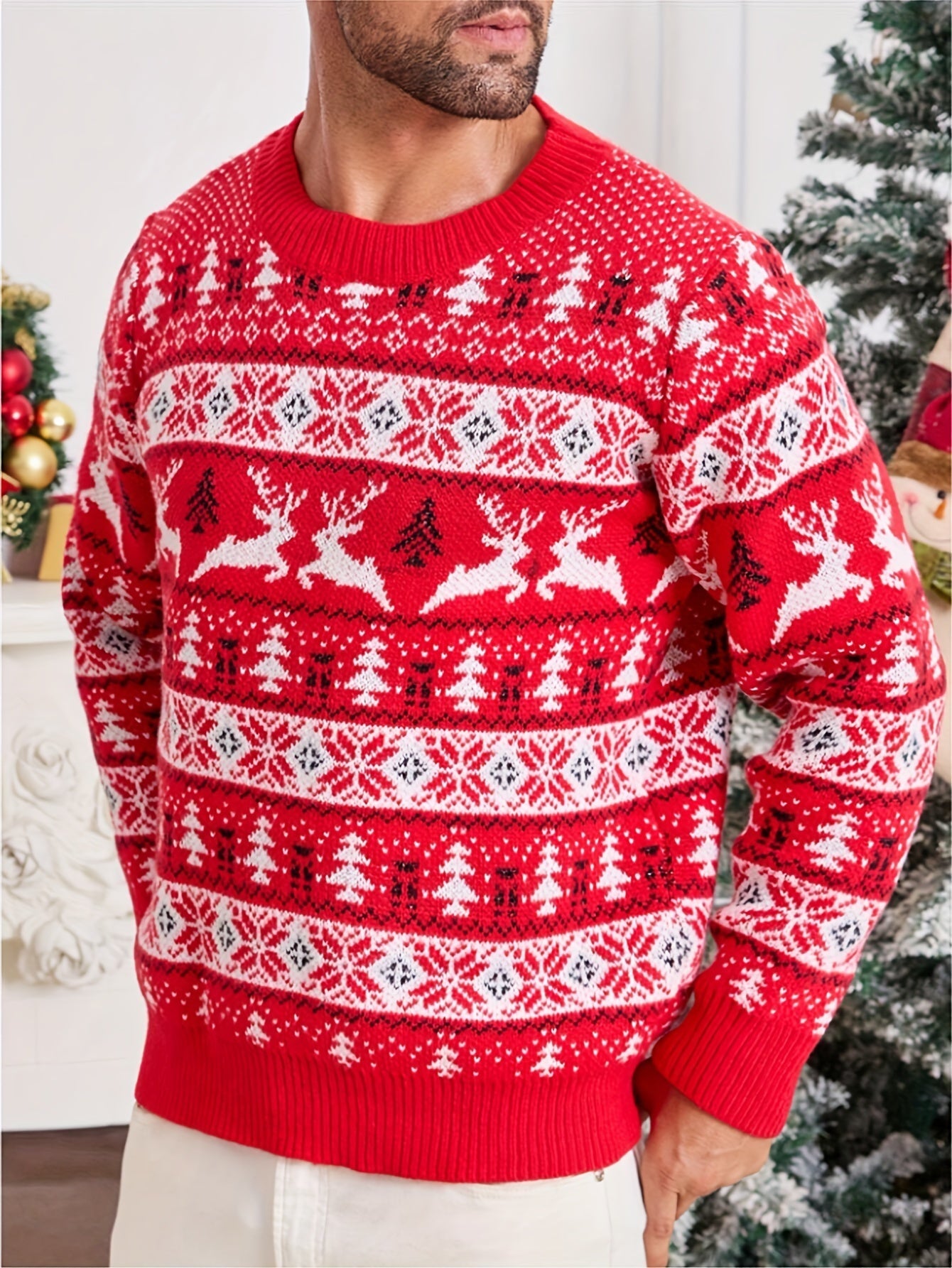 Ruben – Feestelijke Rode Kersttrui met Rendieren en Sneeuwvlokken