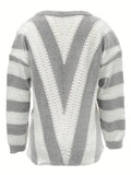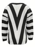 Sandrine - Trendy Gebreide Trui met Geometrisch V-Patroon en Structuur