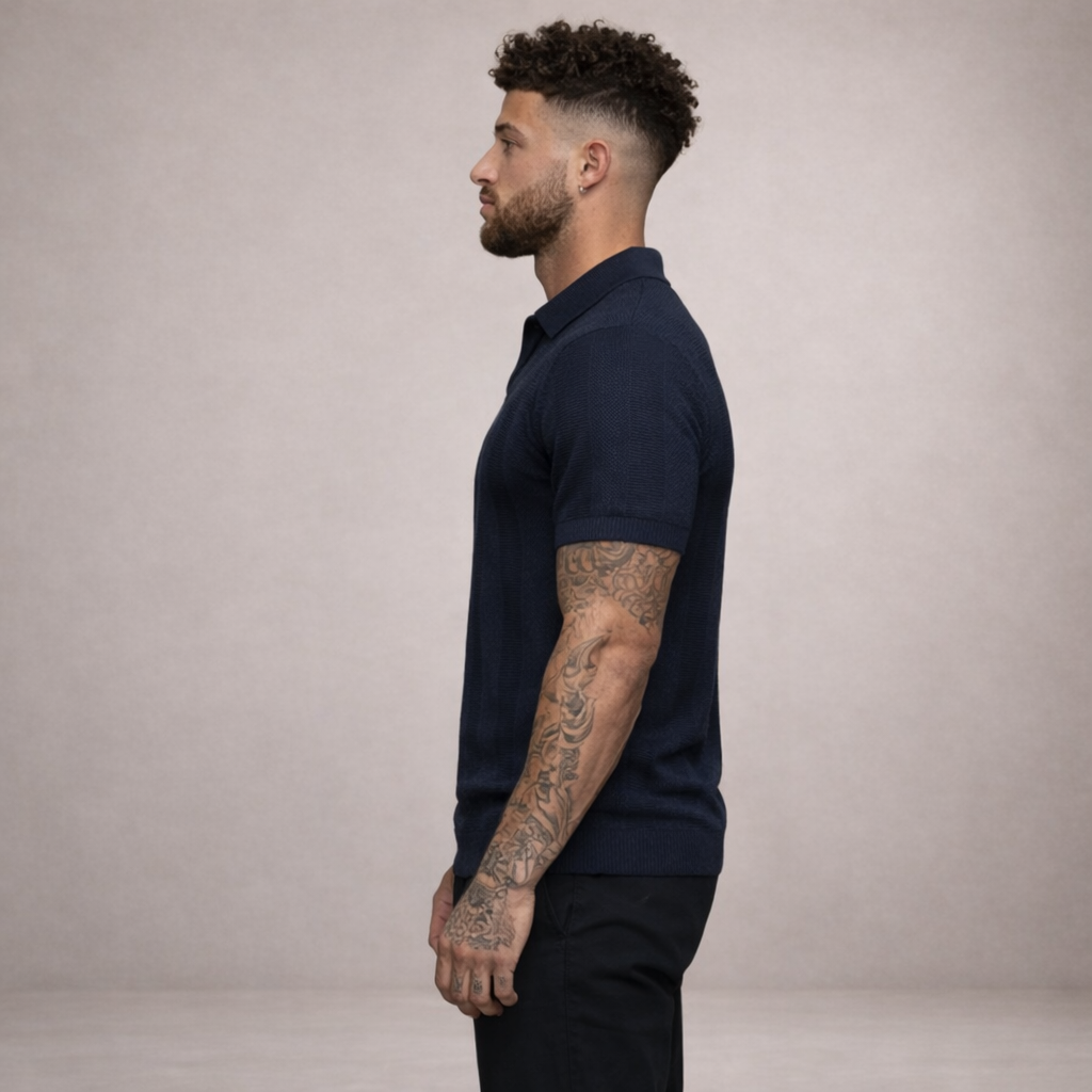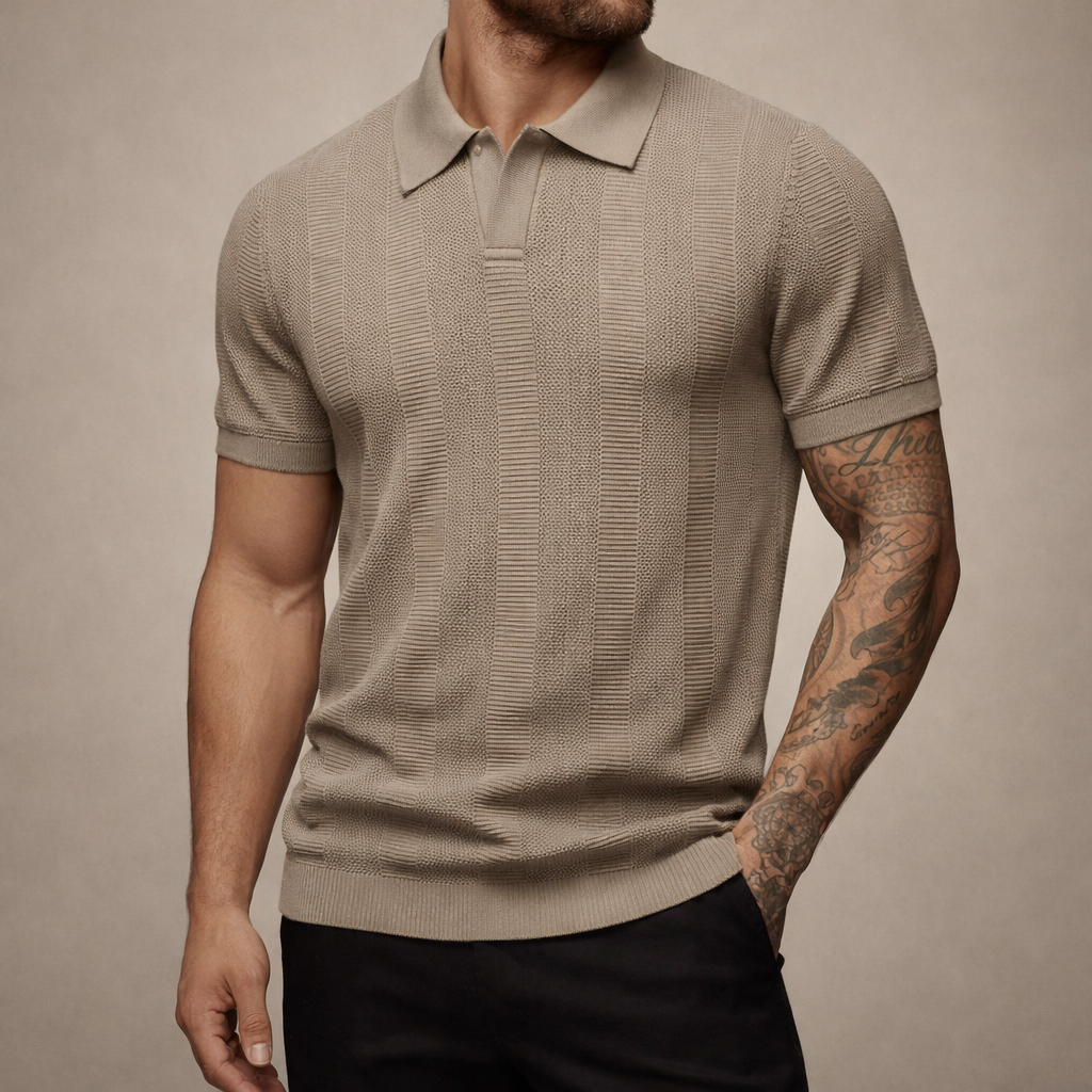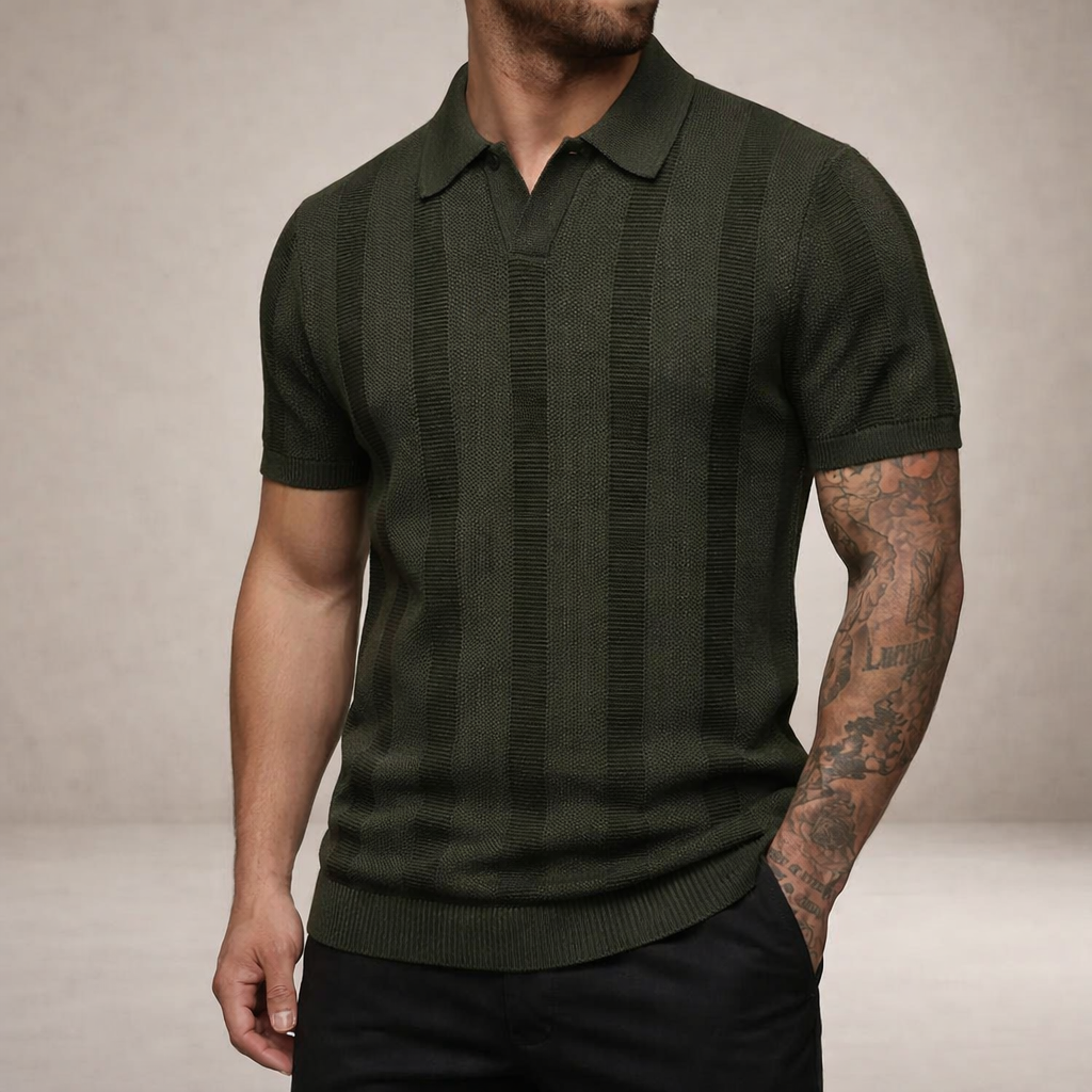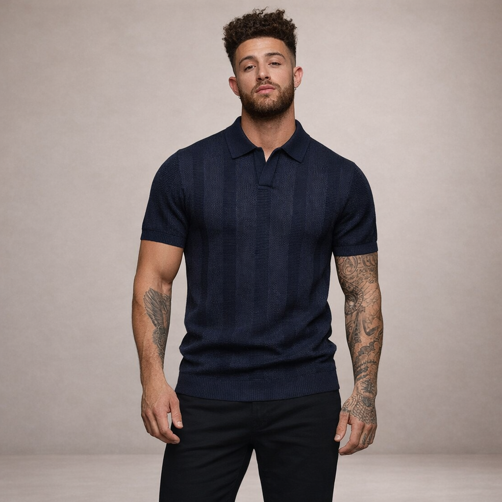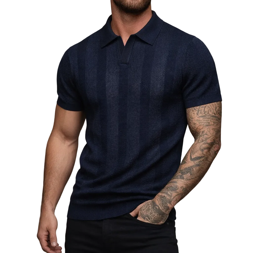 Lars – Heren Gebreid Gestreept Mesh Poloshirt