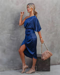 Sarahi – Asymmetrische Satijnen Avondjurk