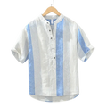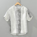 Elio – Ademend Linnen Herenshirt met Halflange Mouwen en Opstaande Kraag