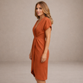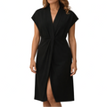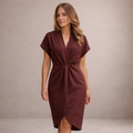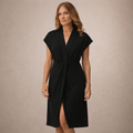 De Serena Midi Wikkeljurk straalt tijdloze klasse en moderne vrouwelijkheid uit. Dankzij de flatterende wikkelstijl, de verfijnde diepe V-hals en de midi-lengte is deze jurk perfect voor zowel chique diners, feestjes als speciale gelegenheden. De elegante split aan de voorkant geeft de look een subtiel verleidelijke touch.