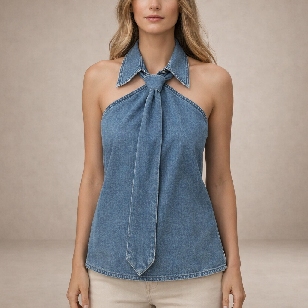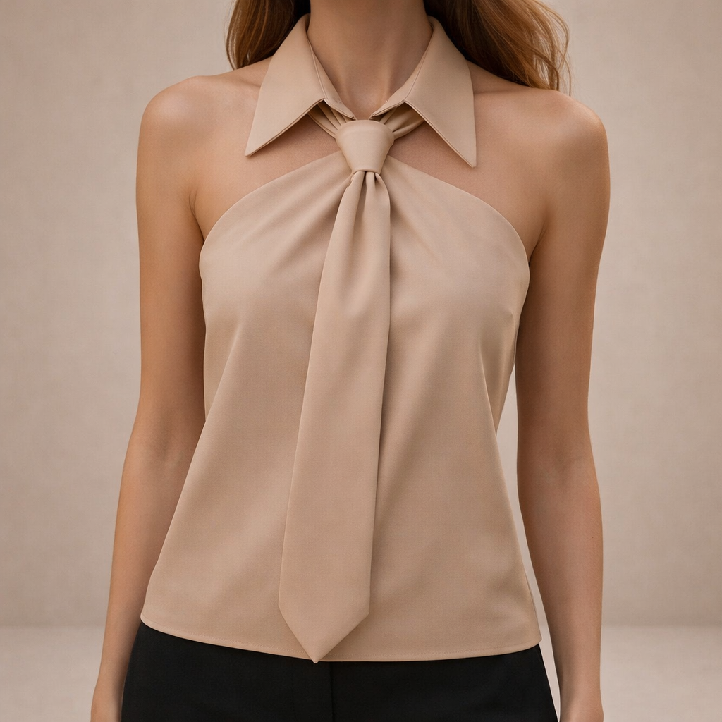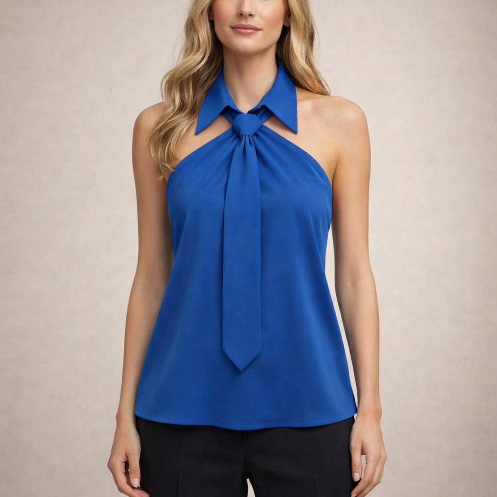 Serenya – Mouwloze Halterblouse met Halsstrik