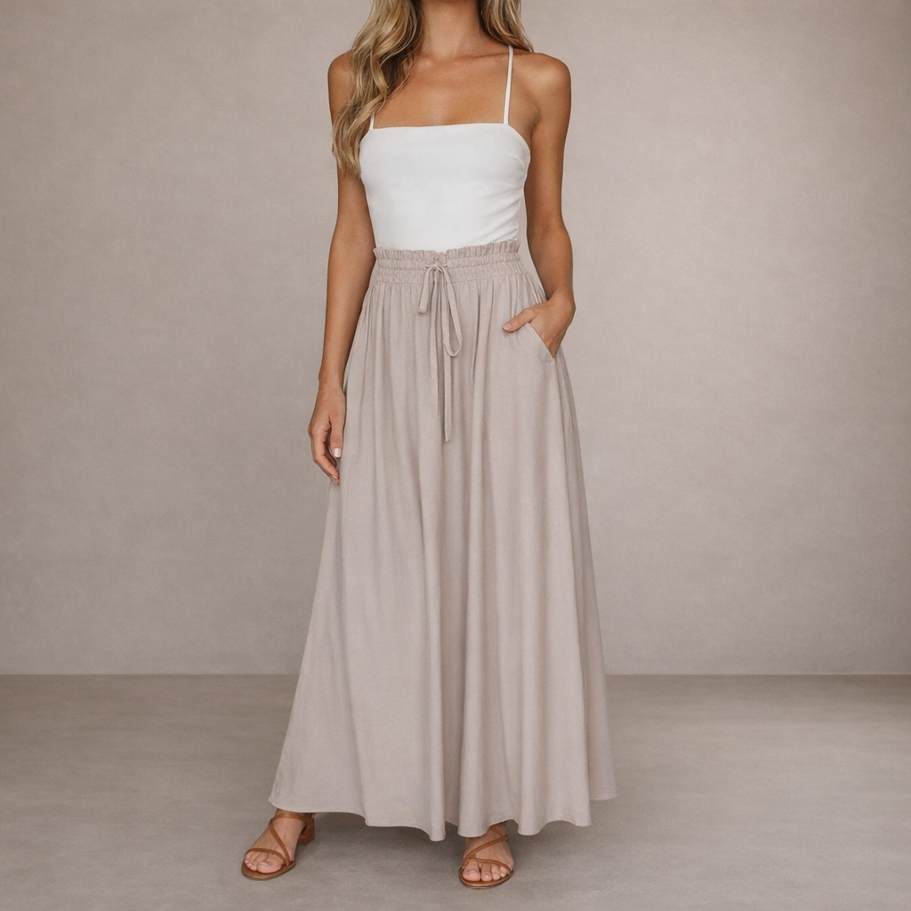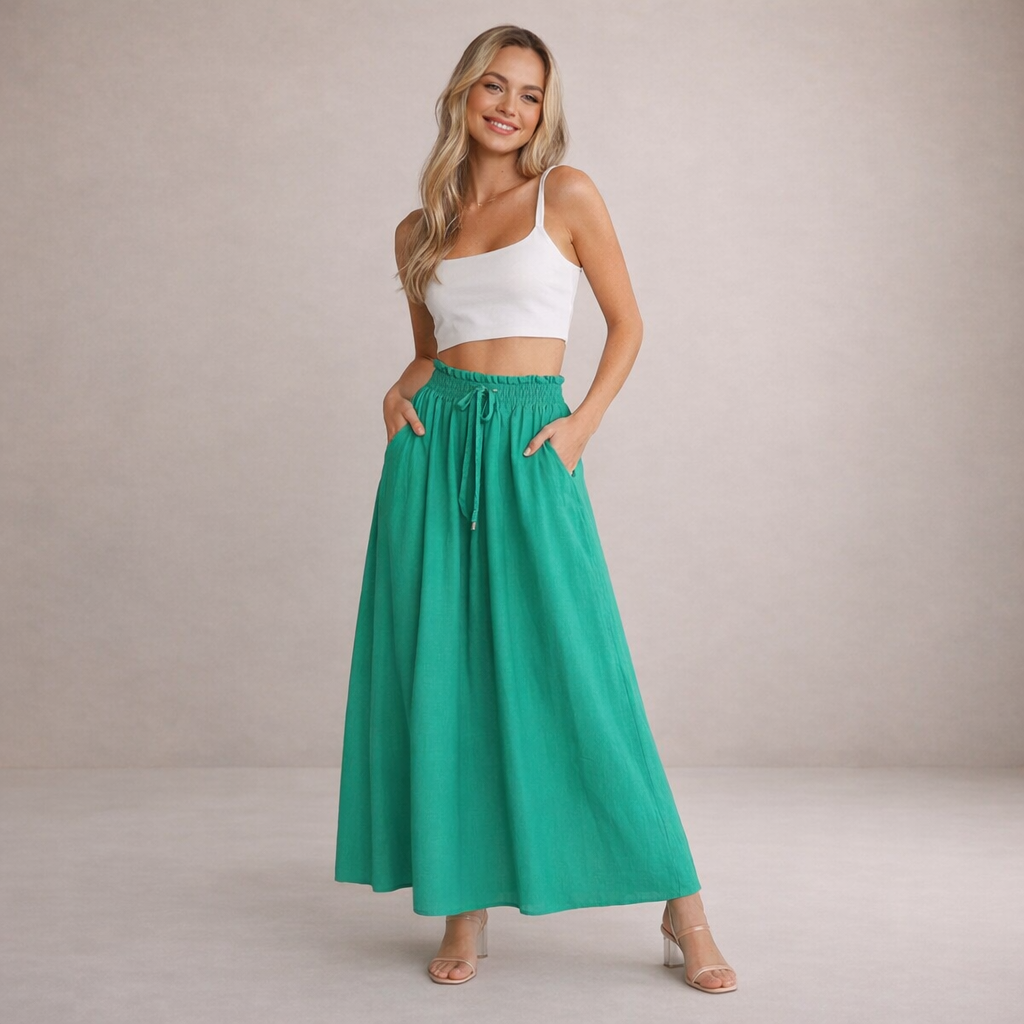 - Details: Luchtige en zachte stof, boho-geïnspireerd design, comfortabele high-waist pasvorm en een elegant silhouet dat moeiteloos stijl en draaggemak combineert
