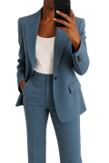 Het Solenne Pak combineert strakke tailoring met stretchcomfort in een stijlvol colbert en bijpassende pantalon. Ontworpen om met je mee te bewegen en toch elegant te blijven, ideaal voor kantoor, een avond uit of los gestyled voor eindeloze combinaties. Verkrijgbaar in meerdere stijlvolle kleuren passend bij jouw look.