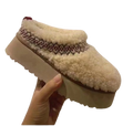 Ervaar comfort en stijl tijdens de winter met de Sonia Pantoffels. Dankzij de zachte pluche buitenlaag en de katoenen voering voelen ze warm en comfortabel aan. Het plateauzoolontwerp geeft de pantoffels een moderne uitstraling en zorgt voor extra stevigheid en grip binnenshuis.
