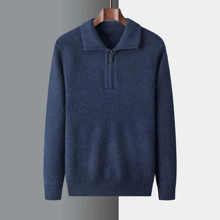 Tavion - Warme Heren Trui met Half-Rits en Klassieke Kraag