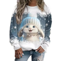 De Tina sweater brengt een warme en speelse wintersfeer dankzij de grote dierenprint op de voorkant. De trui toont een schattig konijntje met winteraccessoires, omringd door sneeuwvlokken voor een gezellige seizoensuitstraling. De zachte stof en relaxte pasvorm maken deze sweater ideaal voor koude dagen thuis of voor casual winteroutfits.