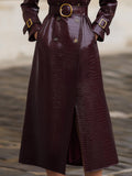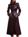 De Tirena Trench is ontworpen om hoofden te doen omdraaien—haar prachtige faux-leer met krokoprint fluistert zelfverzekerde allure bij elke beweging. Met een double-breasted sluiting, gestructureerde revers en een tailleband die je vorm benadrukt, creëert hij een silhouet met presence of je nu in de boardroom zit of door de stad beweegt.