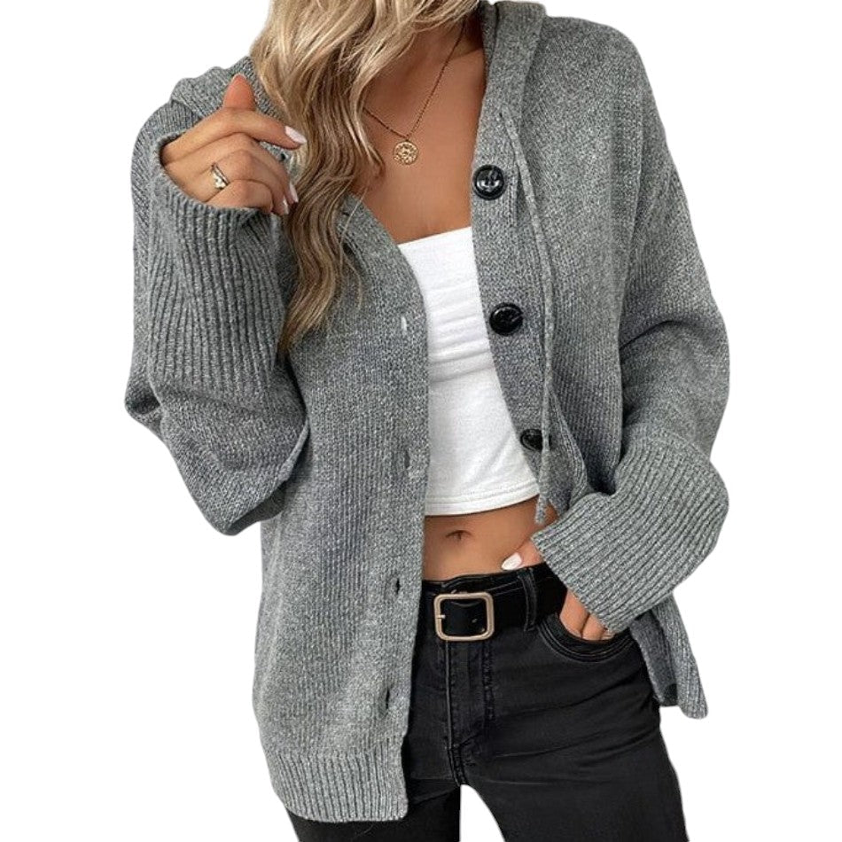 De Vanessa cardigan met capuchon en trekkoord biedt de perfecte balans tussen casual stijl en praktisch comfort. Deze single-breasted cardigan is een veelzijdige must-have voor je garderobe en zorgt ervoor dat je zowel warm als trendy blijft, ongeacht de gelegenheid.