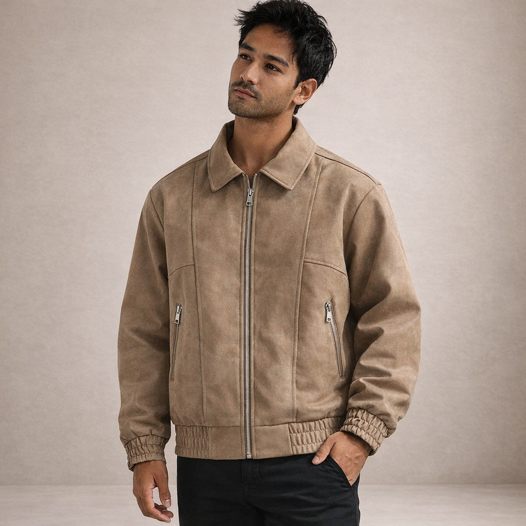 Damon – Suède Jas met Reverskraag in Retro Stijl