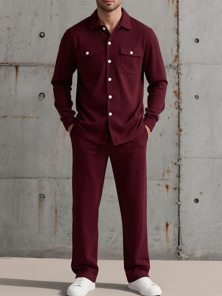 Milan – Luxe Wijnrode Heren Co-ord Set met Knoopdetail