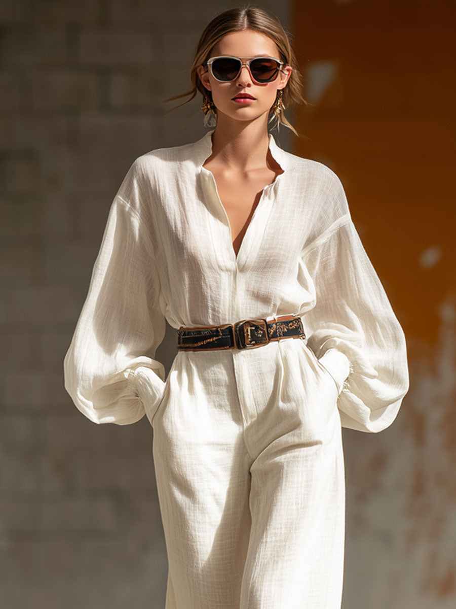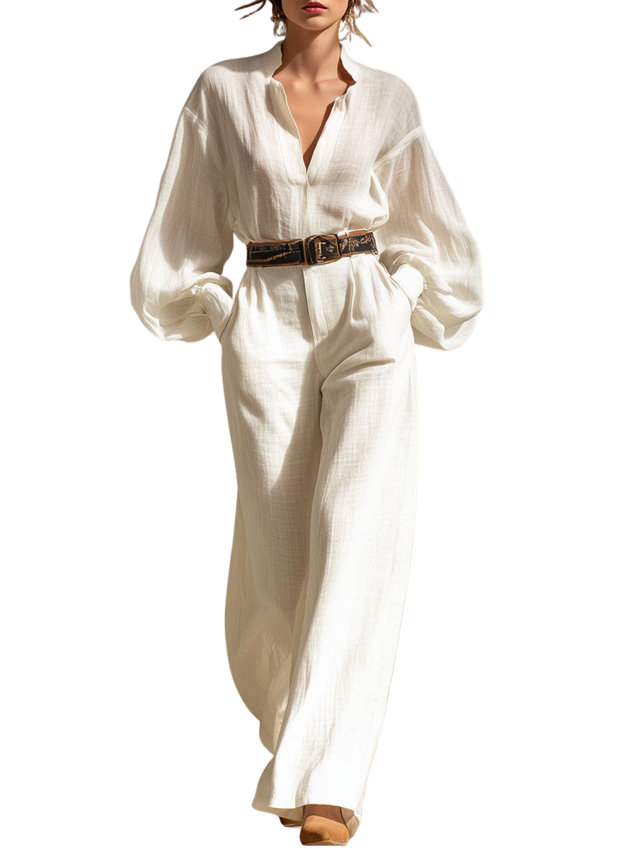 Bianca – Witte Elegante Jumpsuit met Volume Mouwen