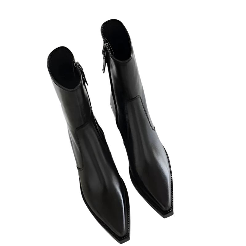 Willamina - Elegante Puntige Dames Enkellaarsjes Met Blokhak
