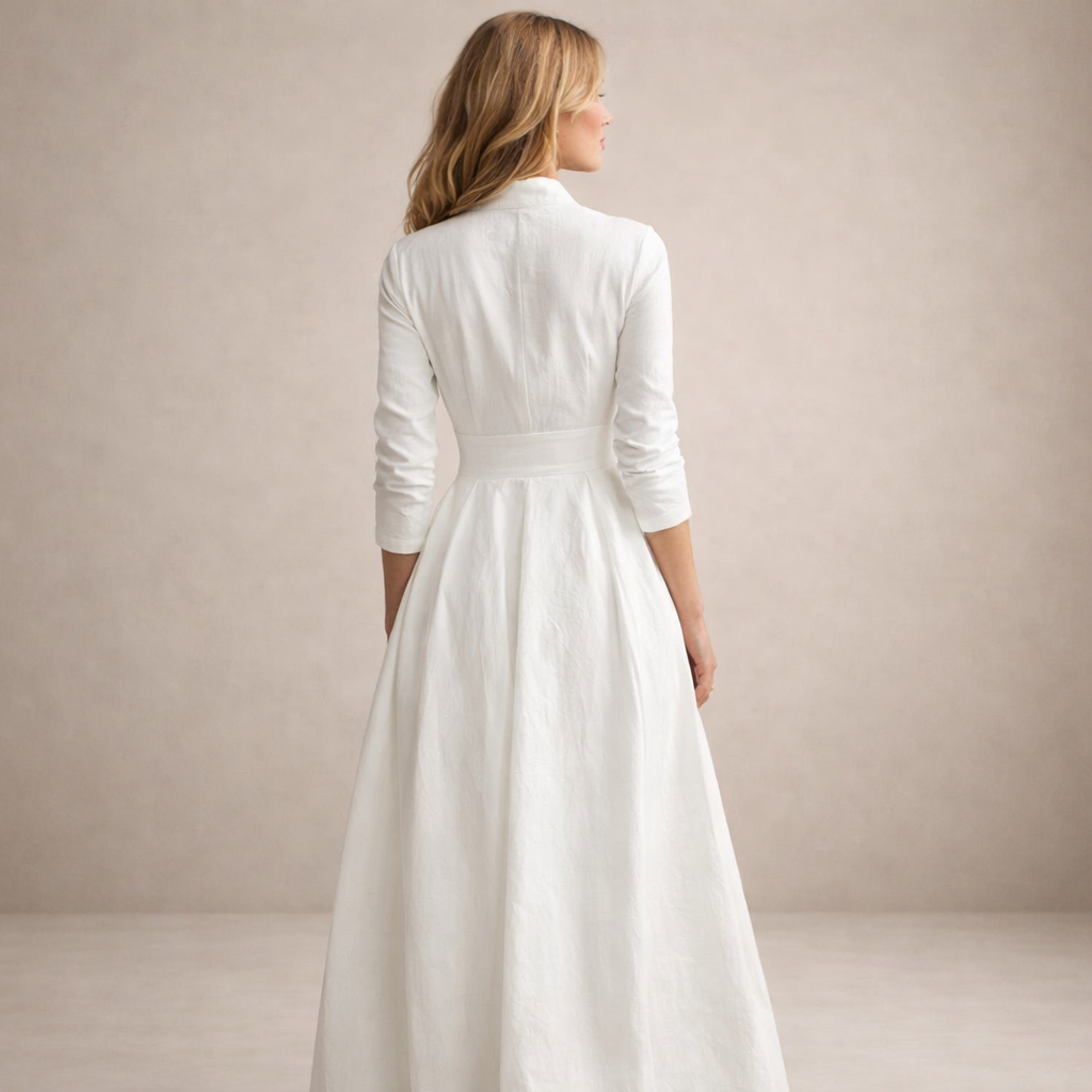 - Zoom: Lange, rechte maxi-zoom die soepel valt en het silhouet verlengt.