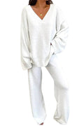 De Yasmine set is vervaardigd uit soepel polyester en heeft een stijlvolle V-hals, lange mouwen en een verstelbaar koord voor een persoonlijke pasvorm. Deze set is perfect voor zowel relaxte dagen thuis als casual uitstapjes.