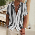 Stap in de Zomer met Vintage Klasse: Zen Gestreepte Vintage Linnen Zomer Blouse Voor Mannen